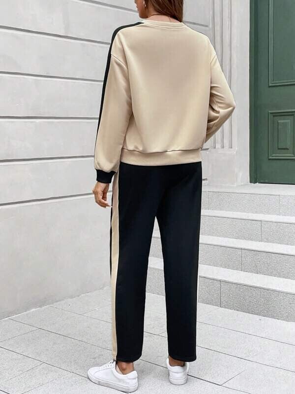 Ensemble Sport - Sweat et pantalon Beige - Bande Latérale Contrastée