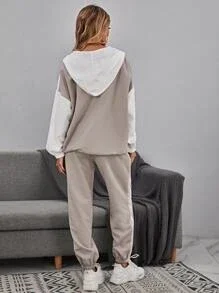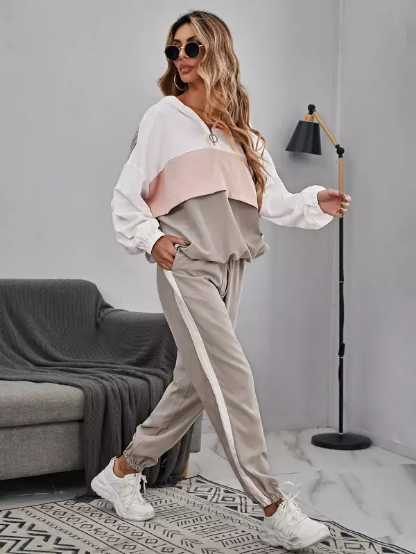Ensemble de survêtement - ColorBlock Rose et gris avec cordon